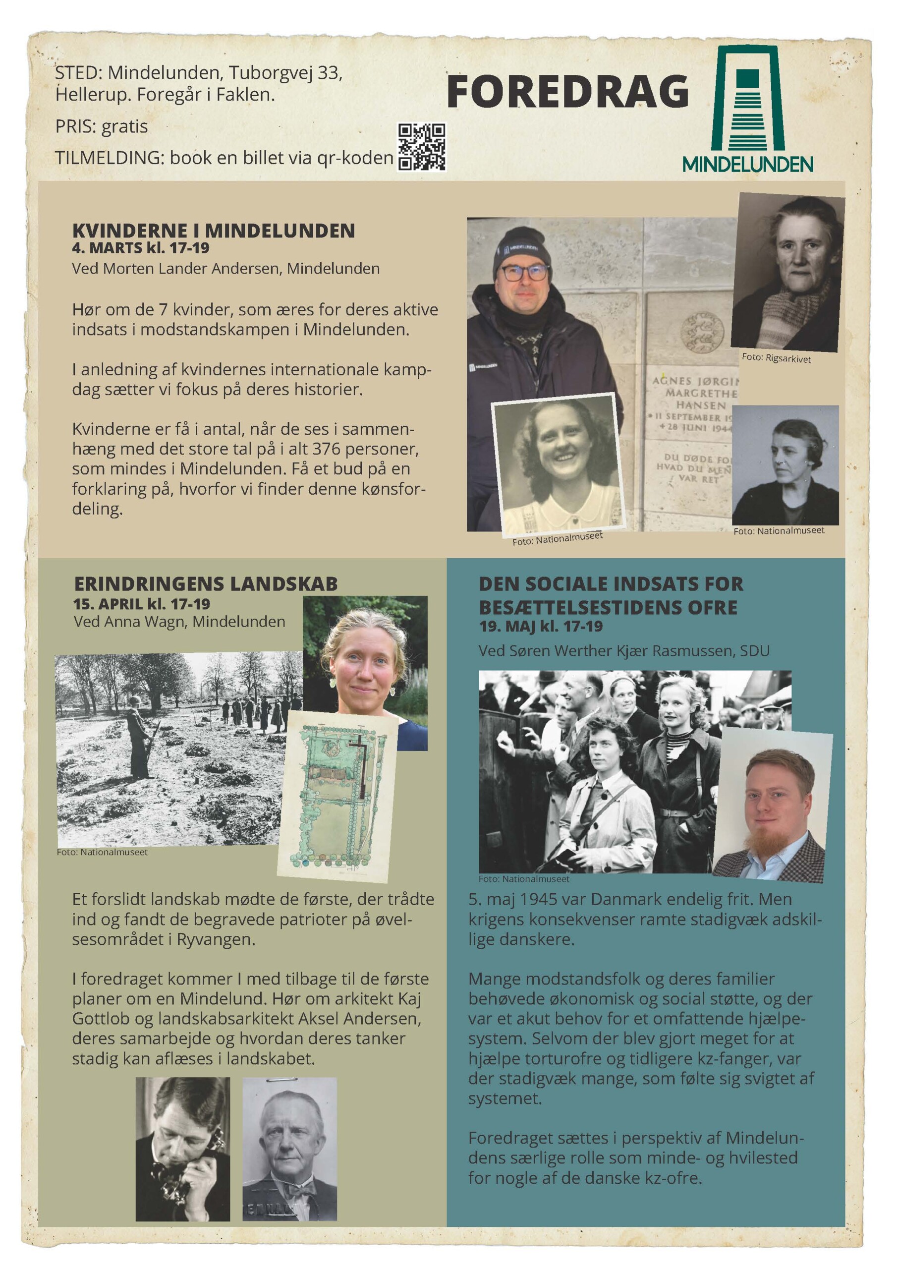 I foredraget kommer I med tilbage til de første planer om en Mindelund. Hør om arkitekt Kaj Gottlob og landskabsarkitekt Aksel Andersen, deres samarbejde og hvordan deres tanker stadig kan aflæses i landskabet.
